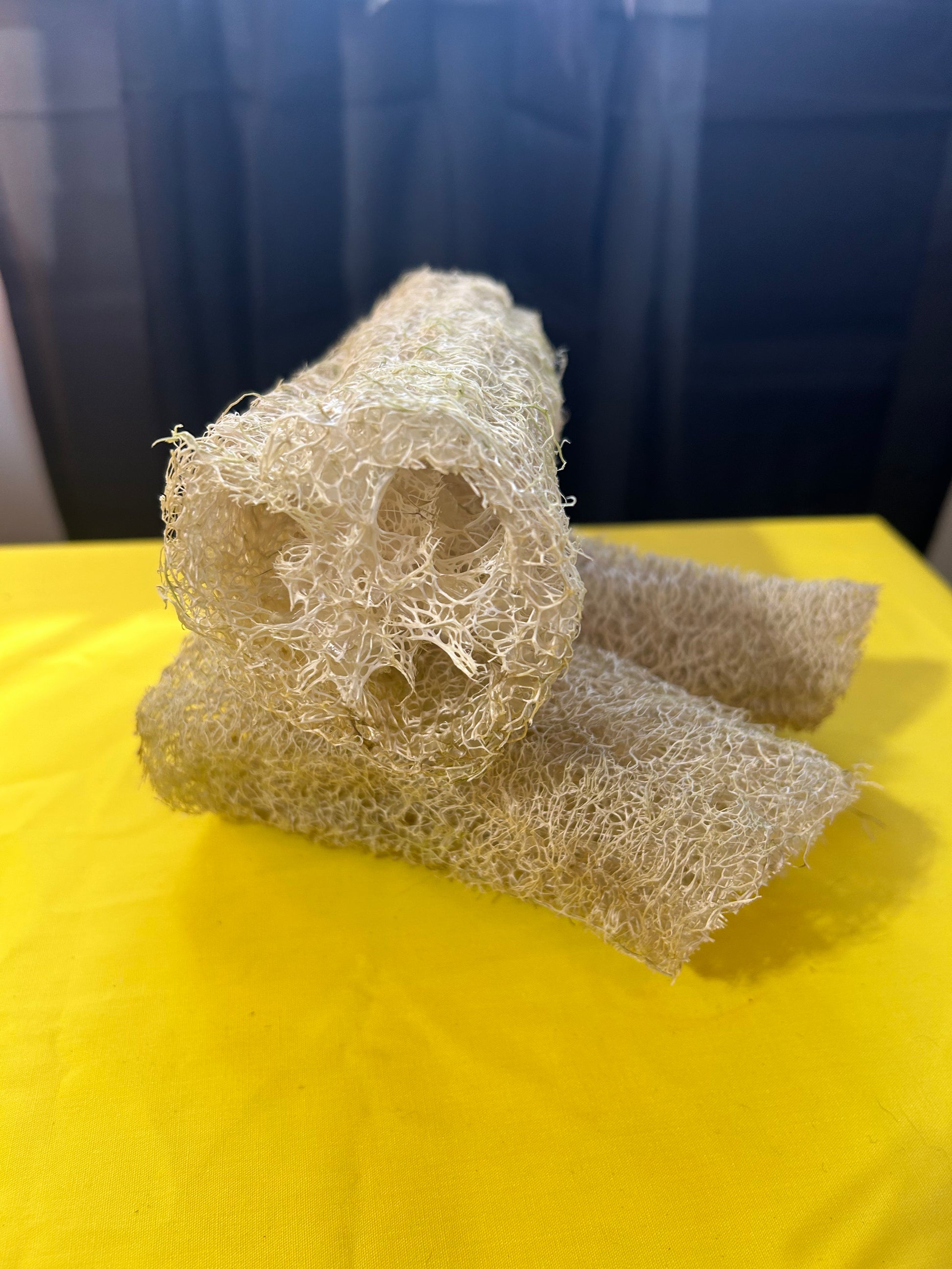 Home grown in our garden luffa! We have several lengths available. We removed most of the seeds but some may still be stuck inside the longer ones.