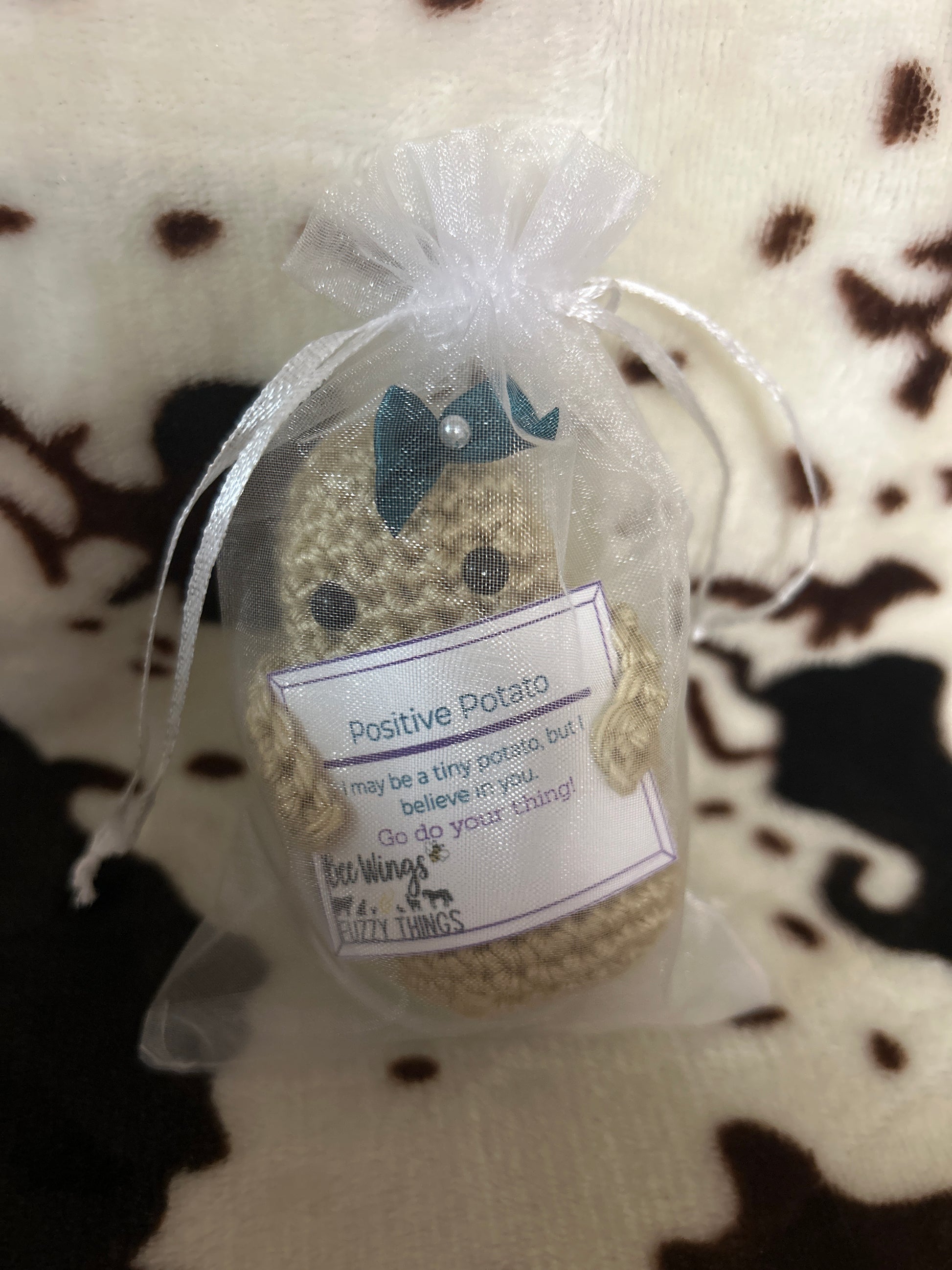 Adorable little hand made positive potato to help you through your day! Card reads “I may be a tiny potato, but I believe in you. Go do your thing!”
